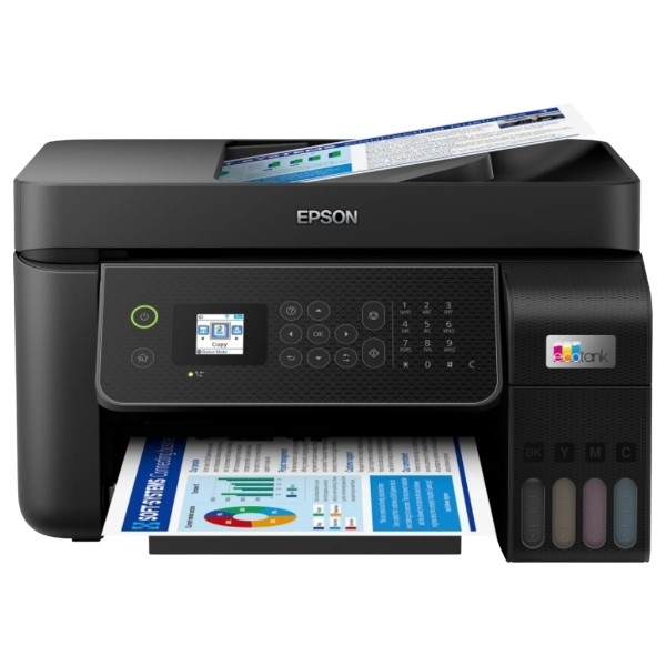 EPSON EcoTank L5310 MFP je zanesljiv in cenovno ugoden večnamenski tiskalnik, zasnovan za domačo in pisarniško uporabo. Združuje funkcije tiskanja, optičnega branja, kopiranja in faksiranja s stekleničkami s črnilom velike kapacitete za brezhibno in varčno tiskanje.